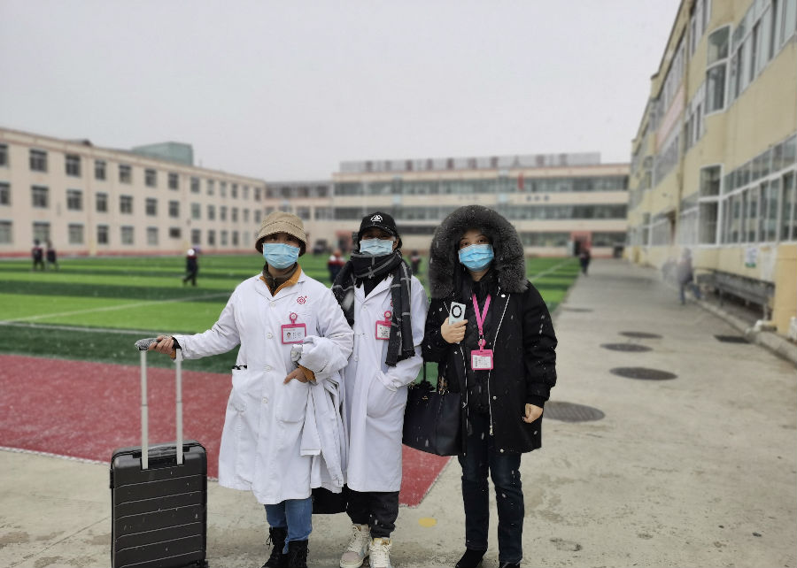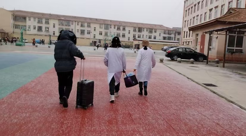 踩着薄雪,我们缓缓爬上了教学楼3楼,稍作准备,我们的筛查团队开始了第一天的先心筛查工作。