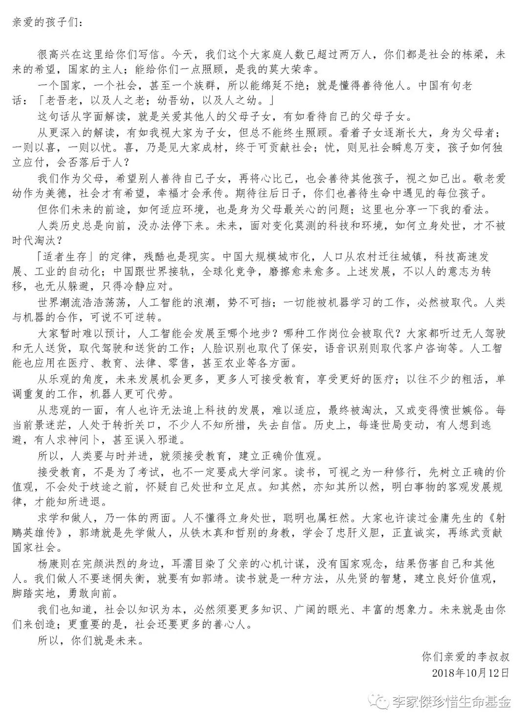 李叔叔致孩子们的一封信