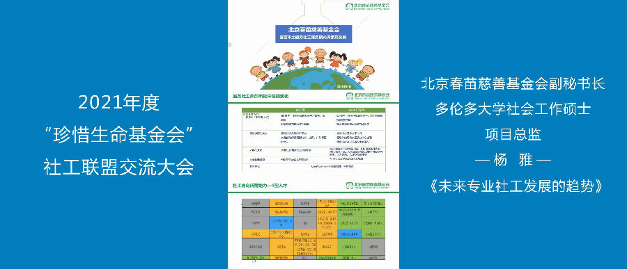 北京春苗基金会副秘书长杨雅就《未来专业社工发展的趋势》分析。她讲到,医务社工外部所处的环境越来越多元化,也预示着未来社工发展服务专科化趋势。她表示,医务社工的发展不仅仅是一个人的发展更是一个团队的发展,希望我们共同发展进步,为患儿家庭提供专业的社工服务,为每个家庭都带来健康、关爱、快乐和希望!