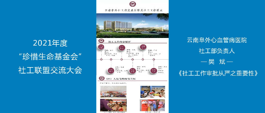 2021年12月29日,2021年度“珍惜生命基金会”社工联盟交流大会线上会议成功召开。会议由云南阜外心血管病医院社工部负责人樊斌主持,基金会、合作机构以及60多位知名三甲医院医务社会工作专家及代表欢聚一堂,共享宝贵经验,为推动医务社工的发展贡献专家级智慧。