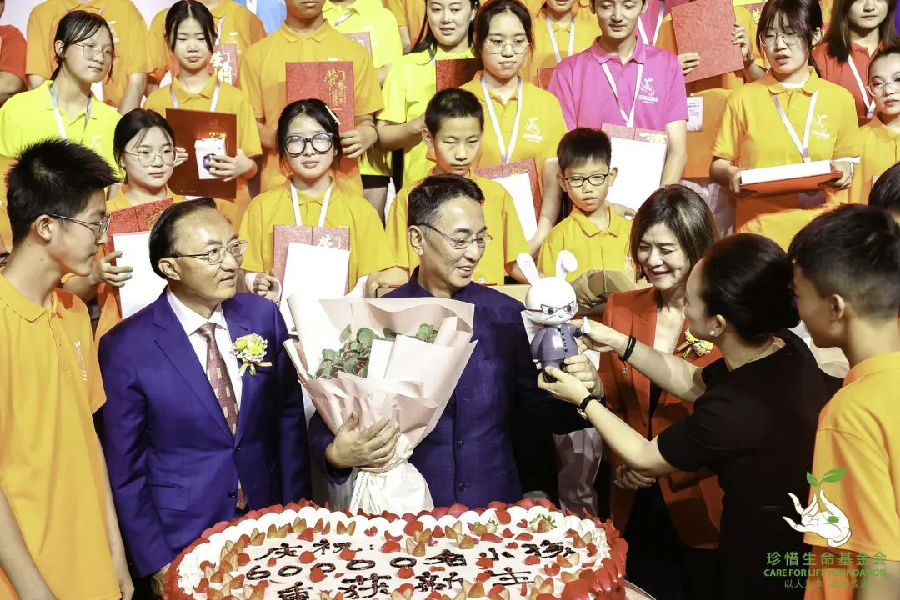 在慈善公益的道路上,奋斗没有终点。截止2023年7月已累计帮助60000个孩子重获新生,这是一个值得铭记的时刻,铭记现在是为了更好的出发!为了表达对李先生的感恩之情,家长和孩子们依次送上兔子礼物、一起做的花画和蛋糕,现场沉浸在了一片温馨和感动氛围中。