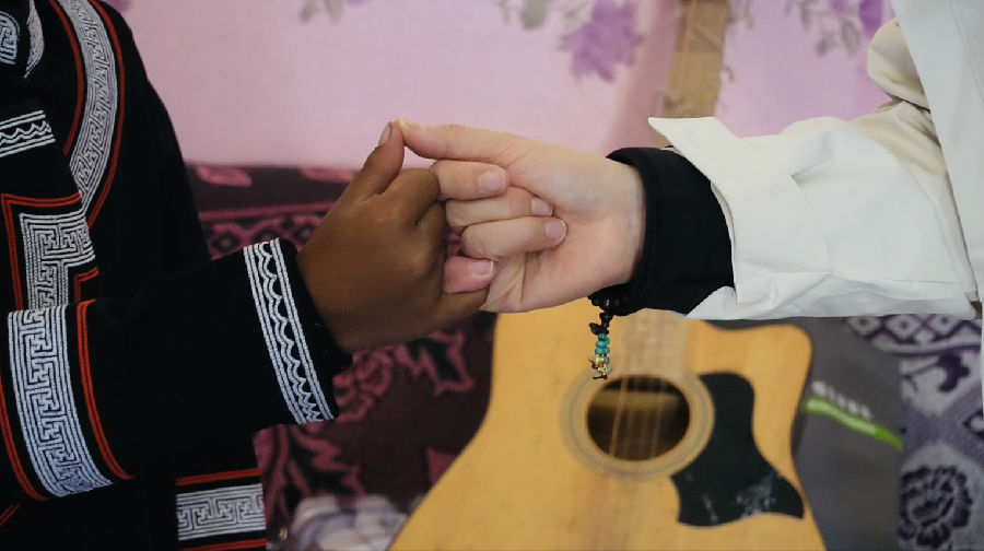 我们对他说,追求梦想的同时,也要学习好文化知识。郭总干事跟石布约定,如果今年他的学习成绩能上一个新台阶,就送他一把新吉他,为他的梦想加油。