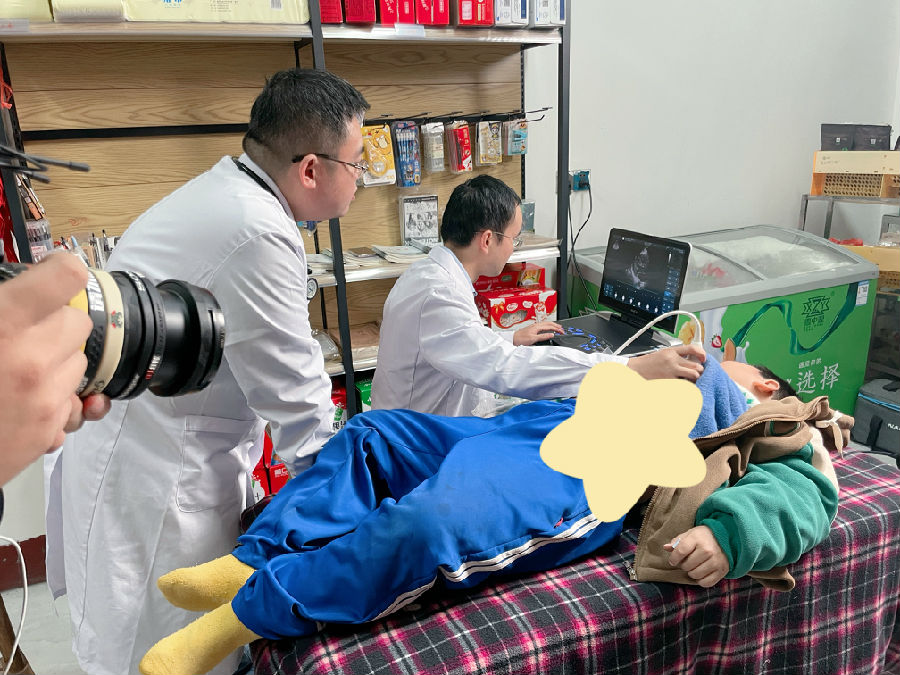 湖南省儿童医院专家义诊团队再次前往当地开展筛查活动时,特别安排了对田田进行回访,并携带彩超设备对孩子进行复查。