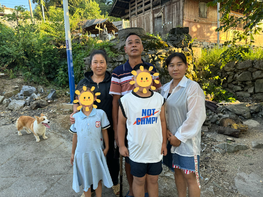 田田的家庭并不富裕,家中有八口人,他有五个姐姐,是村里的脱贫户。爸爸是村里的生态护林员,加上务农的收入,努力维持着全家的开支。