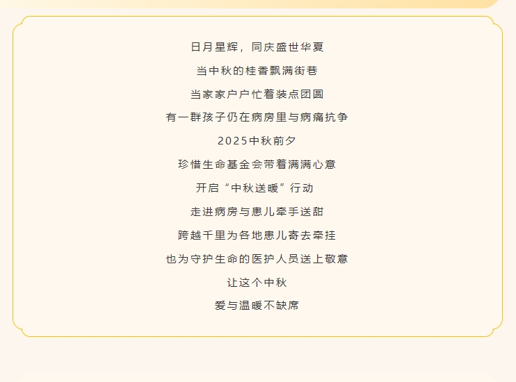 月满中秋,爱满病房 | 珍惜生命基金会中秋送暖行动