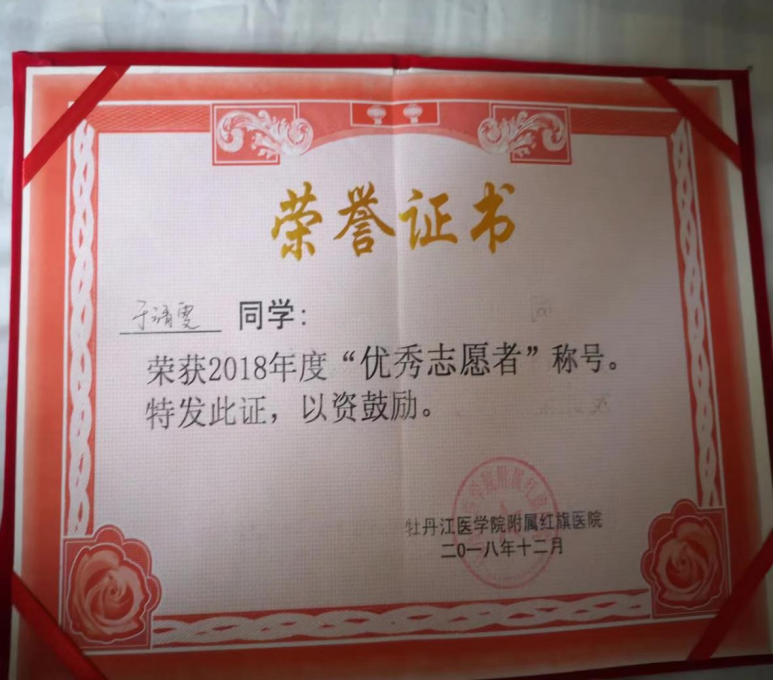在2019年末,突如其来的新冠疫情打破昔日的平静,我深知作为一名医学生应该贡献自己的力量与担当。虽然不能去疫情的最前线,但是我可以从身边做起。我第一时间报名了志愿者,从一开始负责的工作是给每个小区消毒,同时也帮助社区挨家挨户发放通行证、小区生活垃圾处理,采集业主信息和出行情况,到后来组织大家配合医护人员做核酸。我的岗位也许普通,也许平凡,但我愿意付出我的力量,相信国家一定能打赢这场战役。我们的国家有着很强大的实力,疫情被控制住了。我因为工作态度认真获得了嫩江市优秀志愿者称号。