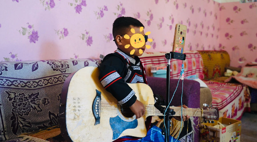 我们对他说,追求梦想的同时,也要学习好文化知识。郭总干事跟石布约定,如果今年他的学习成绩能上一个新台阶,就送他一把新吉他,为他的梦想加油。